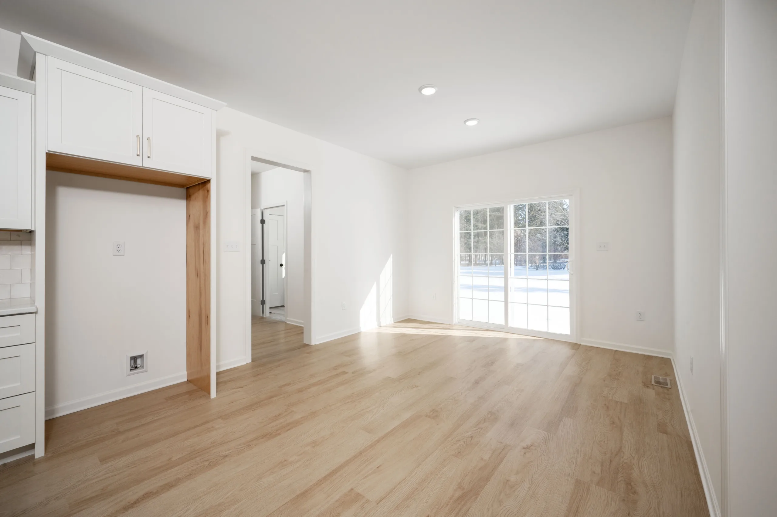 - Open flow from the kitchen to the eating areas and family room space